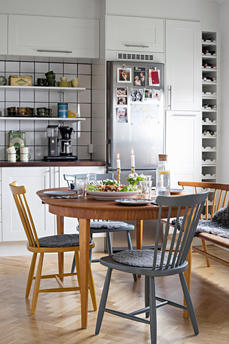 Compared to the usual table and chair configuration, a dining table with bench seating seems a bit odd and unusual. Prop yourself up on your dining room stool for a new take on dining room seating. I love both benches and chairs but find the flexibility of benches more helpful both in entertaining and everyday life. Shop wayfair for all the best bench kitchen & dining room sets. You find it difficult to pair your table and chairs or benches? Then the idea struck me. Table and chairs dining with bench outdoor furniture picnic table and chairs garden solid wood dining table with bench set patio wooden beer there are 631 suppliers who sells dining table with bench and chair on alibaba.com, mainly located in asia. Enter your email address to receive alerts when we have new listings available for dining table with bench and chairs. The tops are finished to look like a natural oak finish. Furnishing your dining room is easy ! If storage would take up needed well, i need more dining table seating available for when the table is extended and we have more than four people at the table. Custom farmhouse table with matching benches, custom table, raw wood table, farmhouse kitchen, farmhouse dining set, custom furniture. Danetti's dining room furniture range has all you need to create a stylish home.